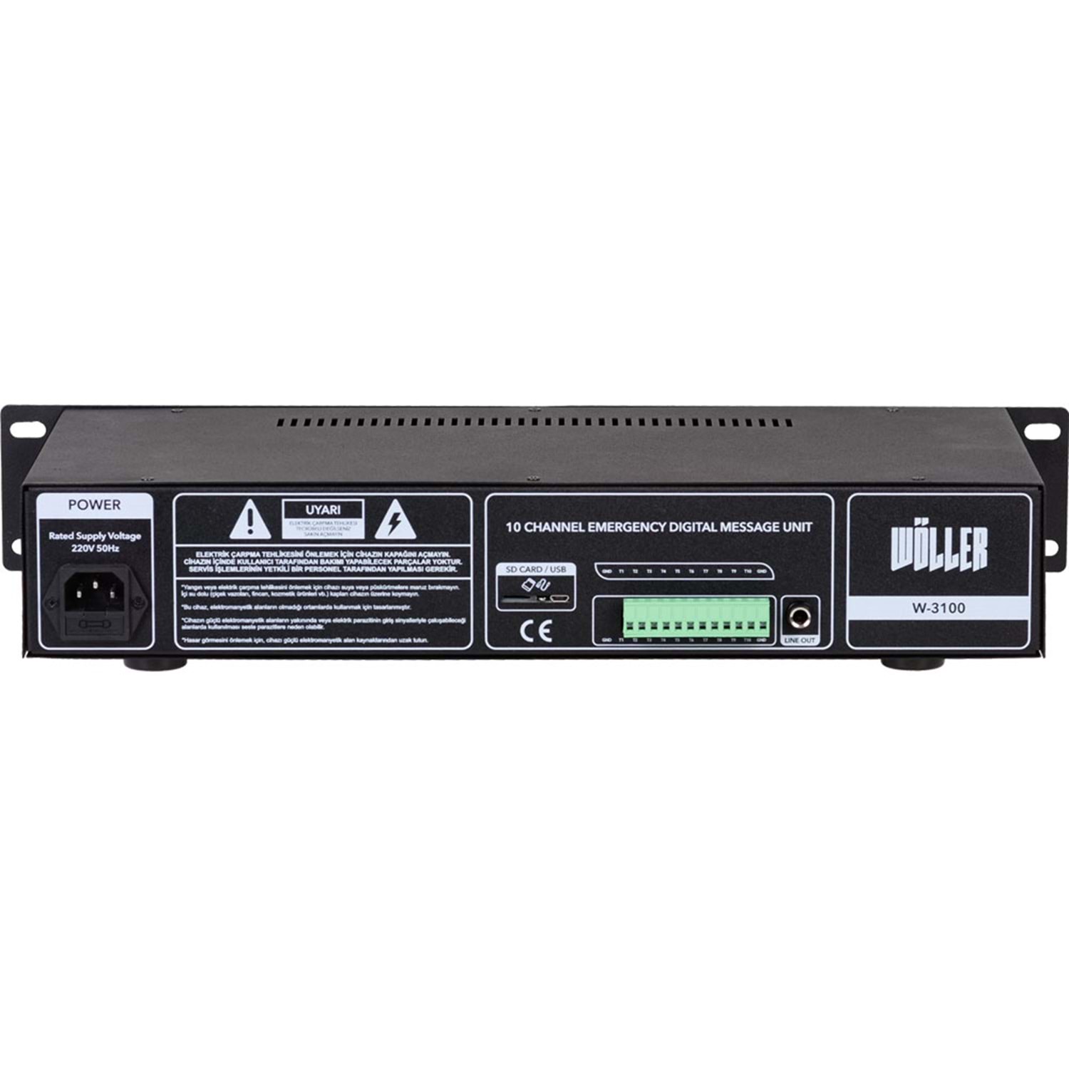 WÖLLER 10 Ch Mesaj Kayıt Ünitesi W-3100 Özellikleri; 1 Line Müzik Çıkışı 10 Farklı Ses Kayıt Özelliği Güç Kaynağı: 220V AC