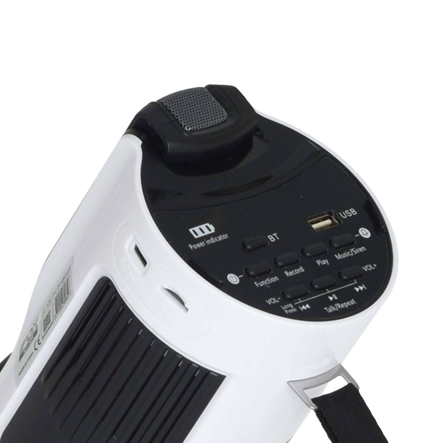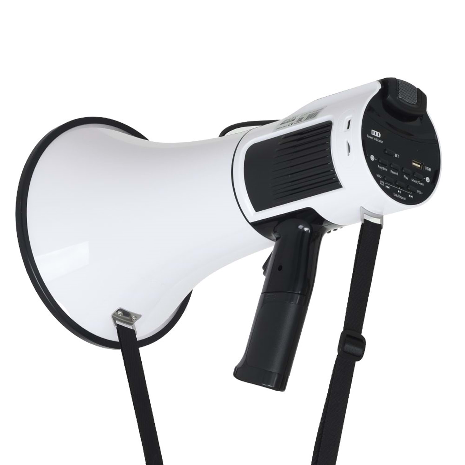 Mike Mikrofonlu Megafon Güç Kapasitesi: 100 Watt Max. Usb Bluetooth Sd Card Siren Fonksiyonu Kayıt Süresi: 300s Pil Tipi: 2200mAh Lityum Pil veya 8 Adet C Tipi Pil Güç Kaynağı: 12V Boyut: 380x210mm