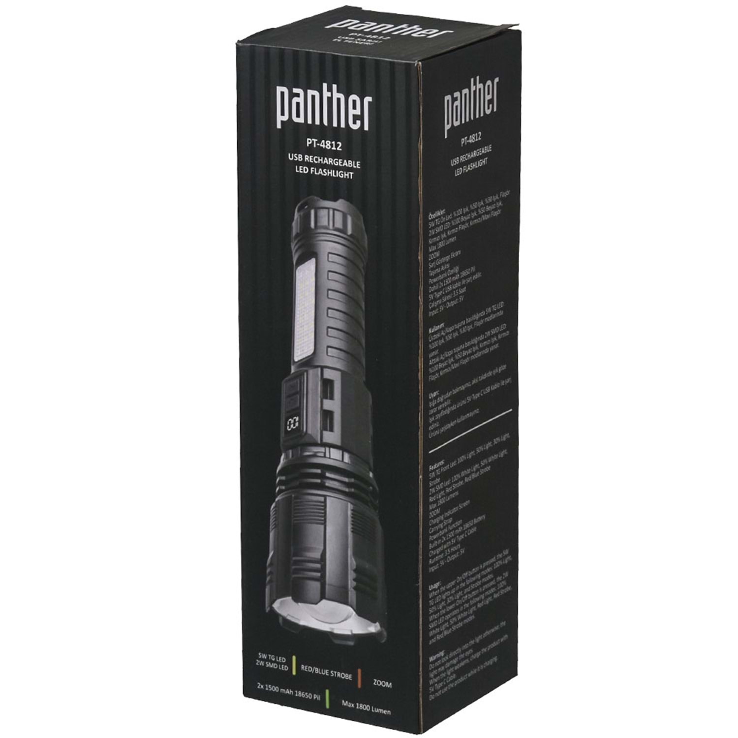 PANTHER Usb Şarjlı El Feneri PT-4812