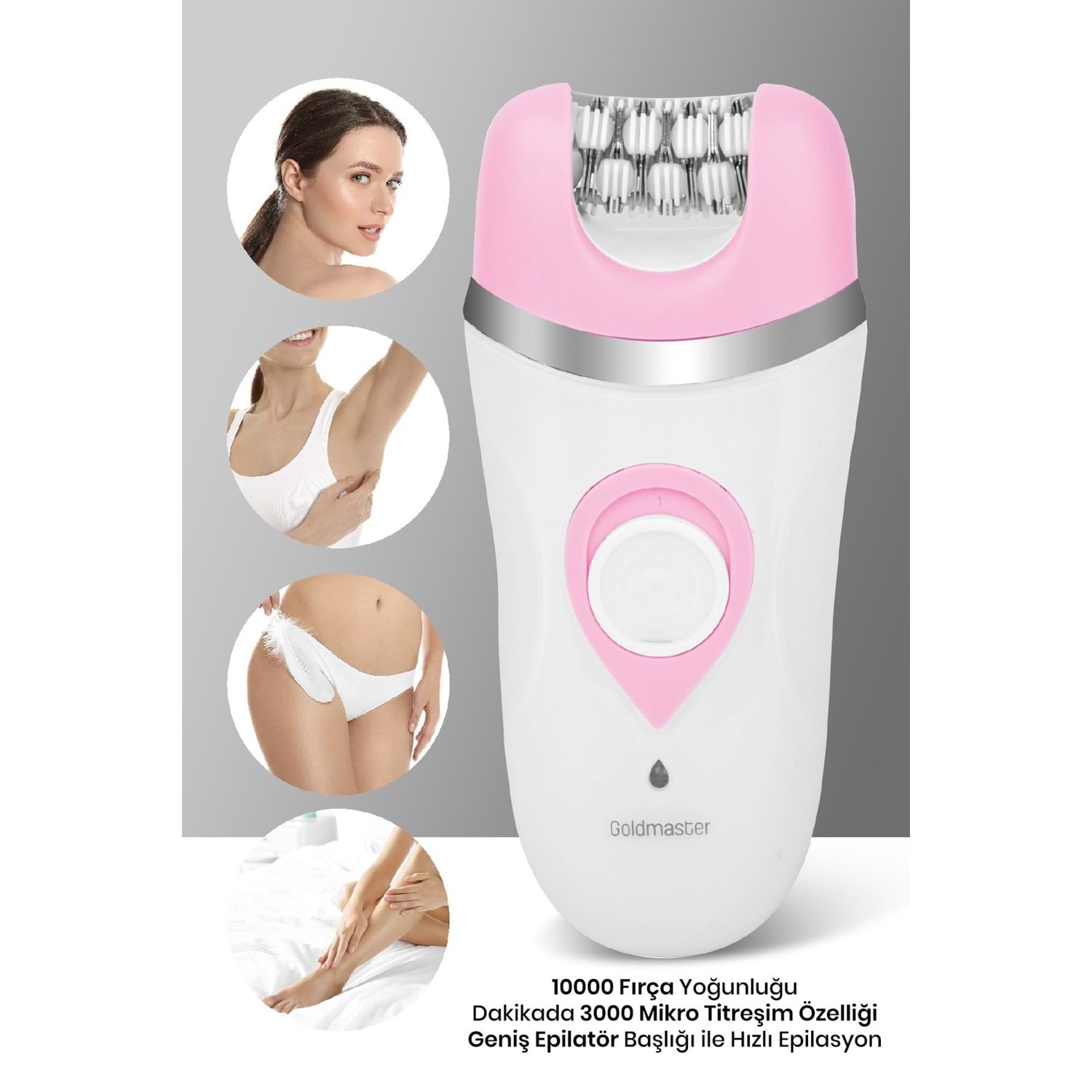 GOLDMASTER Peri Şarjlı Islak Kuru LED Işıklı 2 in1 Epilatör ve Masaj Başlığı Epilasyon Cihazı GM-8166
